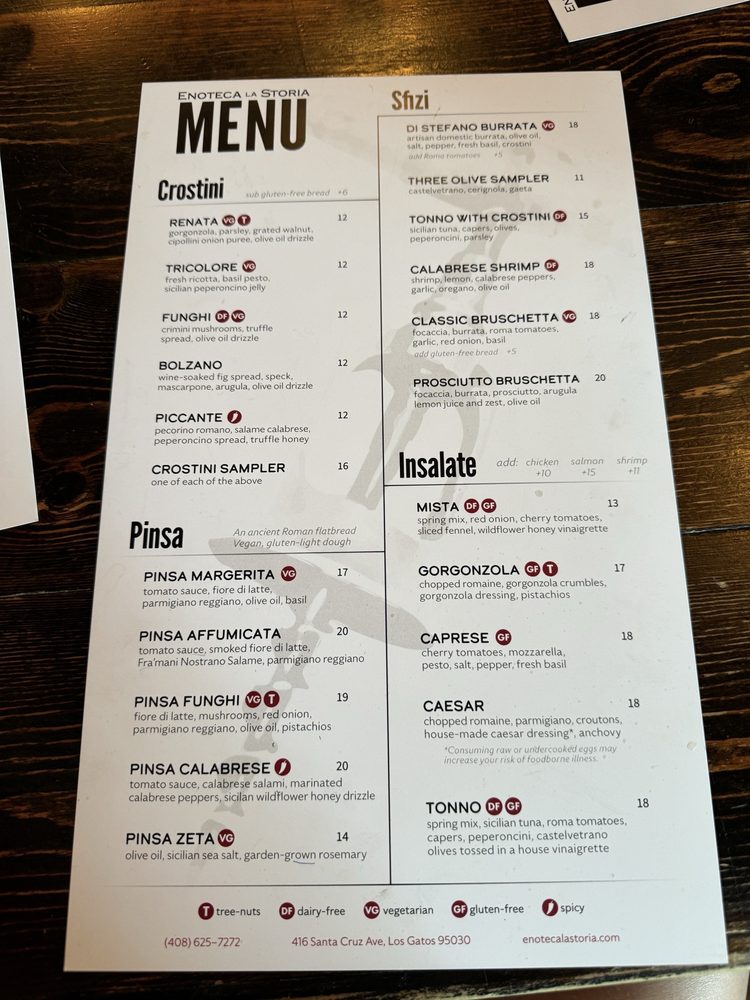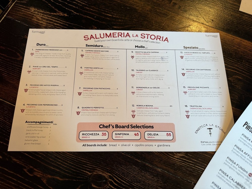 Enoteca La Storia in Los Gatos offers a classy dining experience with a variety of small plates and wine selections. Customers praise the outstanding charcuterie boards, burrata, and bruschetta. The ambiance is described as wonderful, especially when dining on the patio. The service is impeccable, with knowledgeable staff helping to create a delightful dining experience. Guests can enjoy options like the prosciutto bruschetta, Ciao Pepe pasta, and eggs in purgatory for brunch. While the portions may be small, the rich flavors make up for it. Overall, Enoteca La Storia impresses with its delicious food, extensive wine selection, and friendly service. It is a hidden gem in Los Gatos worth trying for a special dining experience.